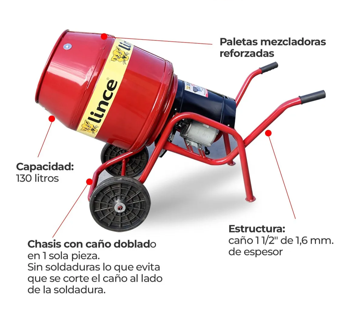 Hormigonera 130lts Motor 1 Hp Weg